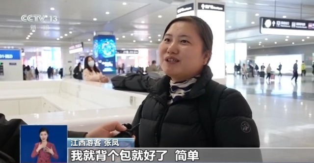 江西游客 张凤:现在人的东西太多了,比较烦琐,这里寄的话很方便。不用带这么多东西,我就背个包就好了,简单。